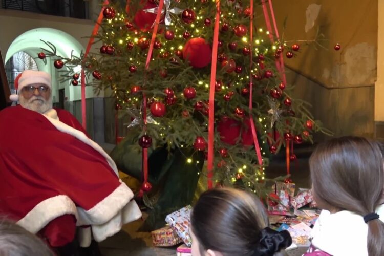Napoli, 19 dicembre 2025 – Nel cuore di Napoli, nell’androne di Palazzo San Giacomo, si è svolta la cerimonia di consegna dei doni raccolti con l’iniziativa solidale “Il Giocattolo Sospeso 2025”, promossa dal Comune di Napoli tramite l’Assessorato alle Politiche Giovanili, al Lavoro e alle Politiche Sociali. L’evento si è svolto in un clima di festa e solidarietà, con momenti di musica e applausi, alla presenza di numerosi bambini appartenenti a famiglie in difficoltà e a comunità rom della città. Tra gli ospiti anche il comico Peppe Iodice, che ha contribuito a rendere speciale la giornata.