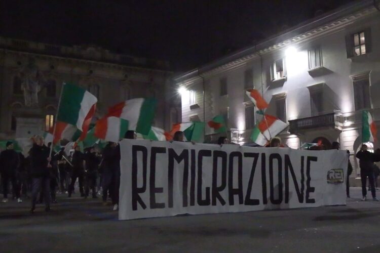 Durante il presidio, i manifestanti si sono posizionati dietro uno striscione con la scritta “Remigrazione”, sventolando bandiere tricolori e intonando slogan di matrice neofascista alternati all’inno nazionale. Nonostante la presenza di alcuni contestatori antifascisti, l’evento si è concluso senza incidenti di rilievo, fatta eccezione per alcune tensioni sfociate in discussioni verbali al termine del presidio.
