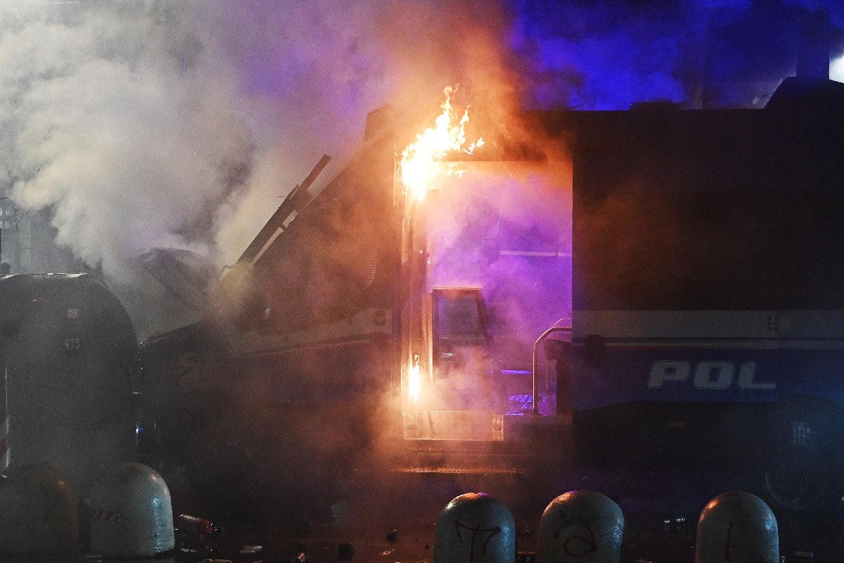 Durante il faccia a faccia, durato oltre un’ora e mezza, sono stati incendiati cassonetti e anche un mezzo blindato della polizia, poi spento dagli stessi agenti. Nelle strade sono volati oggetti di ogni tipo, dalle sedie dei locali chiusi ai pali stradali divelti. Nel caos è stato aggredito un poliziotto, colpito anche con un martello, e sono rimasti feriti anche Bianca Leonardi e il suo filmaker della troupe Rai di “Far West”. Sono almeno 29 gli agenti feriti secondo i dati ufficiali.