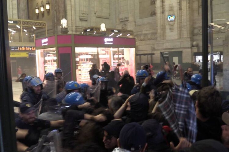 All’arrivo in zona Stazione Centrale, alcuni manifestanti hanno cercato di forzare l’ingresso della stazione, generando un confronto diretto con la polizia, che ha schierato un cordone per impedire l’accesso. Le tensioni sono sfociate in scontri, con il lancio di fumogeni e pietre da parte dei manifestanti, e la risposta della polizia con manganellate e cariche di alleggerimento. La situazione ha richiesto l’intervento di un contingente di carabinieri a supporto delle forze dell’ordine.