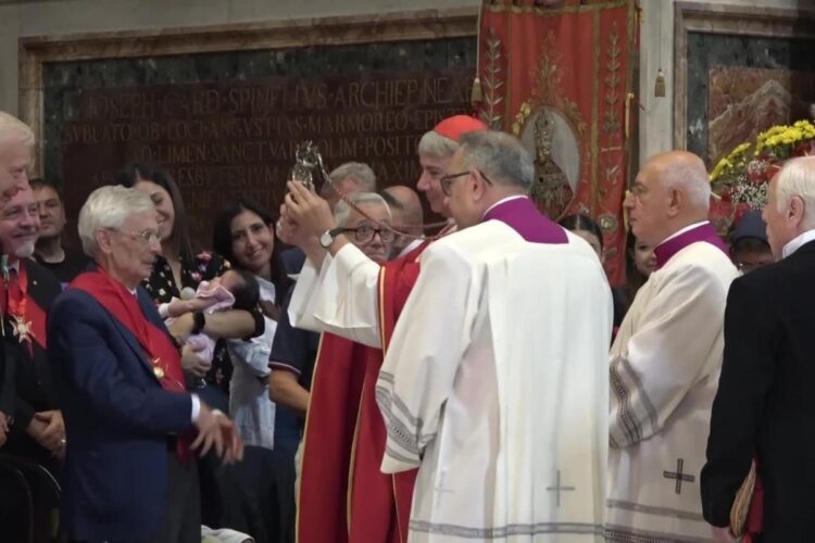 Il rito dello scioglimento del sangue del santo patrono di Napoli rappresenta una delle tradizioni religiose più sentite e radicate nella città partenopea. Monsignor Vincenzo De Gregorio, abate della Cappella del Tesoro, ha comunicato con gioia che “la reliquia è stata trovata completamente liquida”, accompagnando l’annuncio con il tradizionale gesto dello sventolio del fazzoletto bianco da parte di un componente della Deputazione del Tesoro di San Gennaro.
