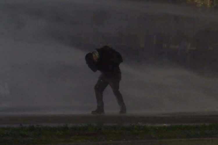 Al loro arrivo in piazza Primo Maggio, una parte dei manifestanti ha cercato di superare la piazza per raggiungere l’impianto sportivo, ma è stata respinta dagli agenti in assetto antisommossa. Per contenere la situazione, la polizia ha fatto uso di idranti e lanciato diversi lacrimogeni. In risposta, i manifestanti hanno reagito lanciando pietre e oggetti dell’arredo urbano contro le forze dell’ordine, trasformando la piazza in un vero e proprio teatro di guerriglia urbana durata circa un’ora.