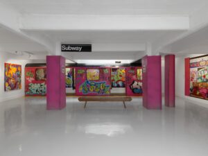 “Miss Subway NYC” non è solo un tributo alla sua carriera, ma una narrazione visiva che intreccia passato e presente, unendo opere contemporanee come Subway Village Train Pink e Subway Village Train Blue del 2022, con archivi storici, bozzetti, memorabilia personali e un autoritratto che reinventa la celebre foto scattata da Martha Cooper nel 1982, quando Pink viaggiava tra i graffiti nella carrozza del Bronx.