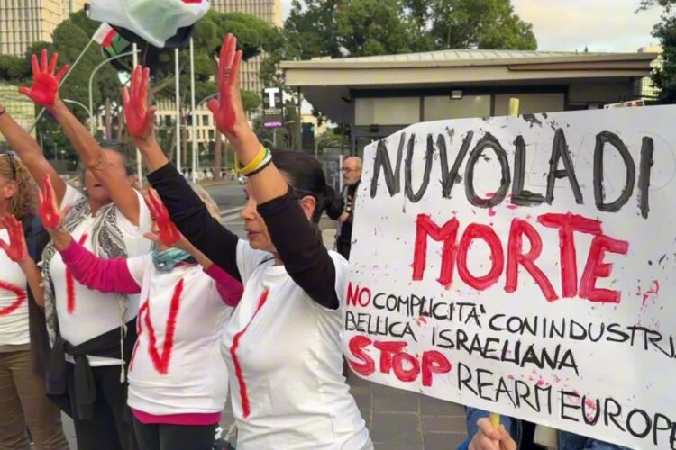 Roma, 21 ottobre 2025 – Mentre si svolge a Roma, presso il centro congressi “La Nuvola” all’Eur, la fiera internazionale Cybertech Europe, dedicata alla sicurezza digitale, un gruppo di circa cento cittadini ha promosso un sit-in di protesta a pochi passi dall’evento. La manifestazione denuncia il ruolo di questa fiera come vetrina per l’industria bellica e dei dispositivi di sorveglianza, in particolare quelli sviluppati e testati dal governo israeliano contro la popolazione palestinese di Gaza.