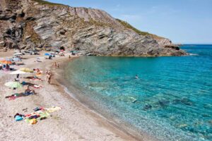 La spiaggia di Argentiera non è fatta di sabbia bianchissima e acqua bassa. Qui il fondale scende rapidamente, il mare è limpido ma profondo, ideale per chi ama nuotare o fare snorkeling. La sabbia ha una grana grossolana, scura e dorata, con una particolare tonalità “metallica” dovuta ai minerali residui delle attività estrattive. Non è una spiaggia comoda, attrezzata, ma è libera, ampia e quasi mai affollata: perfetta per chi cerca un luogo dove ascoltare solo le onde e il vento. Non mancano però i servizi minimi: c’è un chiosco bar nei mesi estivi, un piccolo parcheggio vicino e qualche alloggio alternativo nei dintorni, tra cui B&B e case vacanza immerse nel nulla. Il contesto è totalmente sicuro, ma richiede rispetto: rispetto per le rovine, per il silenzio, per la solitudine del luogo. Qui si viene per ritrovare qualcosa, non per consumare una giornata di mare qualsiasi.