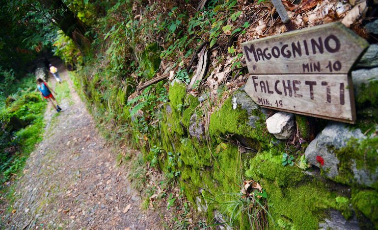 Superato il campo sportivo e il cimitero, si scorge la chiesa di Sant’Albino, fondata nel 1151, che custodisce un affresco quattrocentesco. La presenza di queste architetture fa capire come il territorio sia stato via di comunicazione e presidio per secoli. Procedendo lungo la salita, il sentiero si immerge in un tratto di castagneto particolarmente suggestivo prima di raccordare la selciata proveniente da Magognino: qui il passo si fa più regolare, il dislivello si distribuisce e il panorama, nelle aperture tra gli alberi, offre scorci del lago che si intravedono a sorpresa.