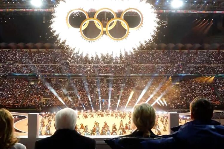 La cerimonia ha unito musica classica e pop, con esibizioni di Andrea Bocelli, che ha cantato “Nessun dorma”, e Mariah Carey, in un omaggio a Modugno con “Nel blu dipinto di blu”. La voce di Laura Pausini ha intonato l’Inno di Mameli, mentre l’attore Pierfrancesco Favino ha recitato l’”Infinito” di Leopardi. Sullo sfondo, i cinque cerchi olimpici si sono illuminati sopra lo stadio, simbolo universale dei Giochi.