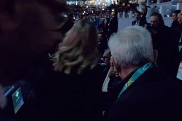 L’arrivo delle principali autorità è stato accompagnato da un video narrativo che ha catturato l’attenzione del pubblico globale, mostrando il Presidente Mattarella a bordo di un tram storico guidato dal campione Valentino Rossi, una scena che ha unito sport e cultura in un’immagine suggestiva e simbolica.