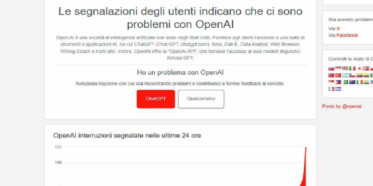 ChatGPT down, segnalazioni su Downdetector