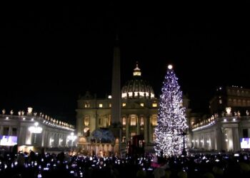 Città del Vaticano, 15 dicembre 2025 – Si è svolta oggi la tradizionale inaugurazione del Presepe e l’illuminazione dell’albero di Natale in Piazza San Pietro, presieduta da Sr. Raffaella Petrini, Presidente del Governatorato Vaticano. Alla presenza delle delegazioni di Bolzano-Bressanone e Nocera Inferiore-Sarno, il Presepe, realizzato con elementi tipici del territorio agro nocerino-sarnese, presenta una doppia rappresentazione della Madonna. L’albero, un abete rosso alto 25 metri, è un dono dei comuni di Lagundo e Ultimo, accompagnato da altre 40 piante destinate agli uffici vaticani.